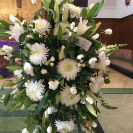 Price: $298.00 LOVING BLOOMS, PURPLE AND WHITE, CASKET SPRAY- ON SALE WAS $390 Product Tags: Same-day Delivery