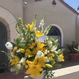 Price: $174.00 ON SALE- WAS $189- HEARTFELT CONDOLENCES- YELLOW & WHITE Product Tags: Next-day Delivery